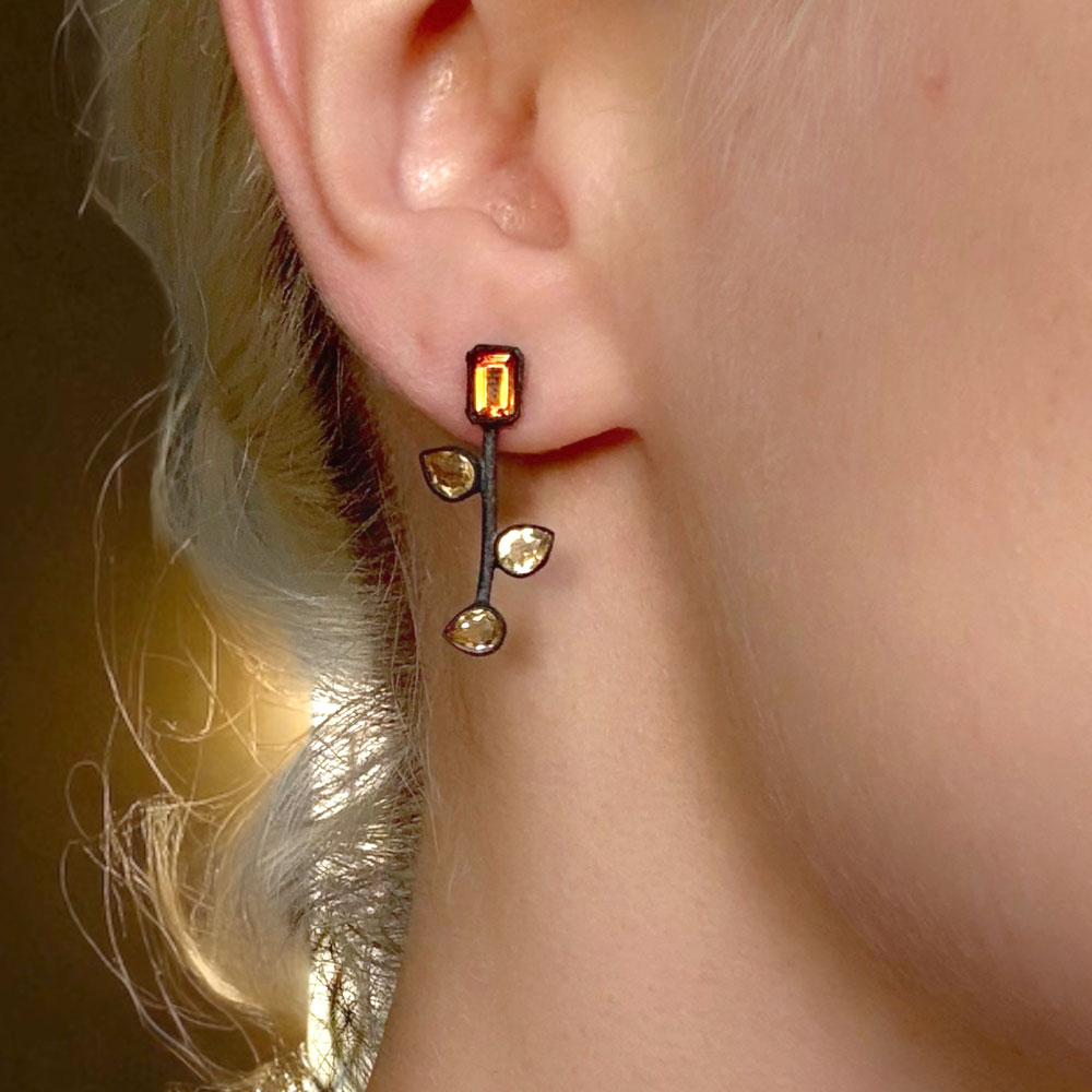 El İşçiliğiyle Şekillendirilmiş, Sitrin Taşıyla Süslenmiş Bu Küpeler, Dal Ve Yaprak Formuyla Doğayı Simgeler. Solara, Estetikle Doğanın İç İçe Geçtiği Modern Bir Tasarım Örneğidir.